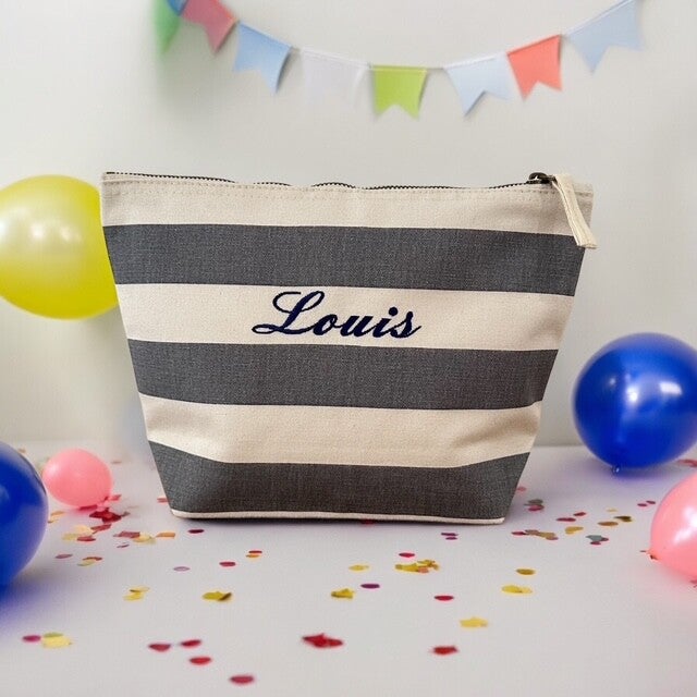 Pratique, résistante et pleine de charme, cette trousse en coton rayé apporte une touche de fraîcheur à votre organisation. Disponible en rayures rose, bleu marine ou grise, elle s’adapte à tous les styles et toutes les envies.